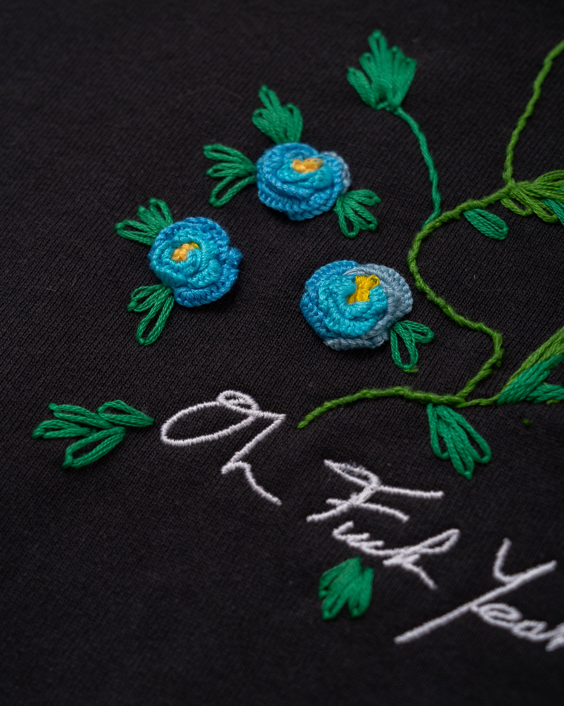 Black Crewneck - Floral Embroidery