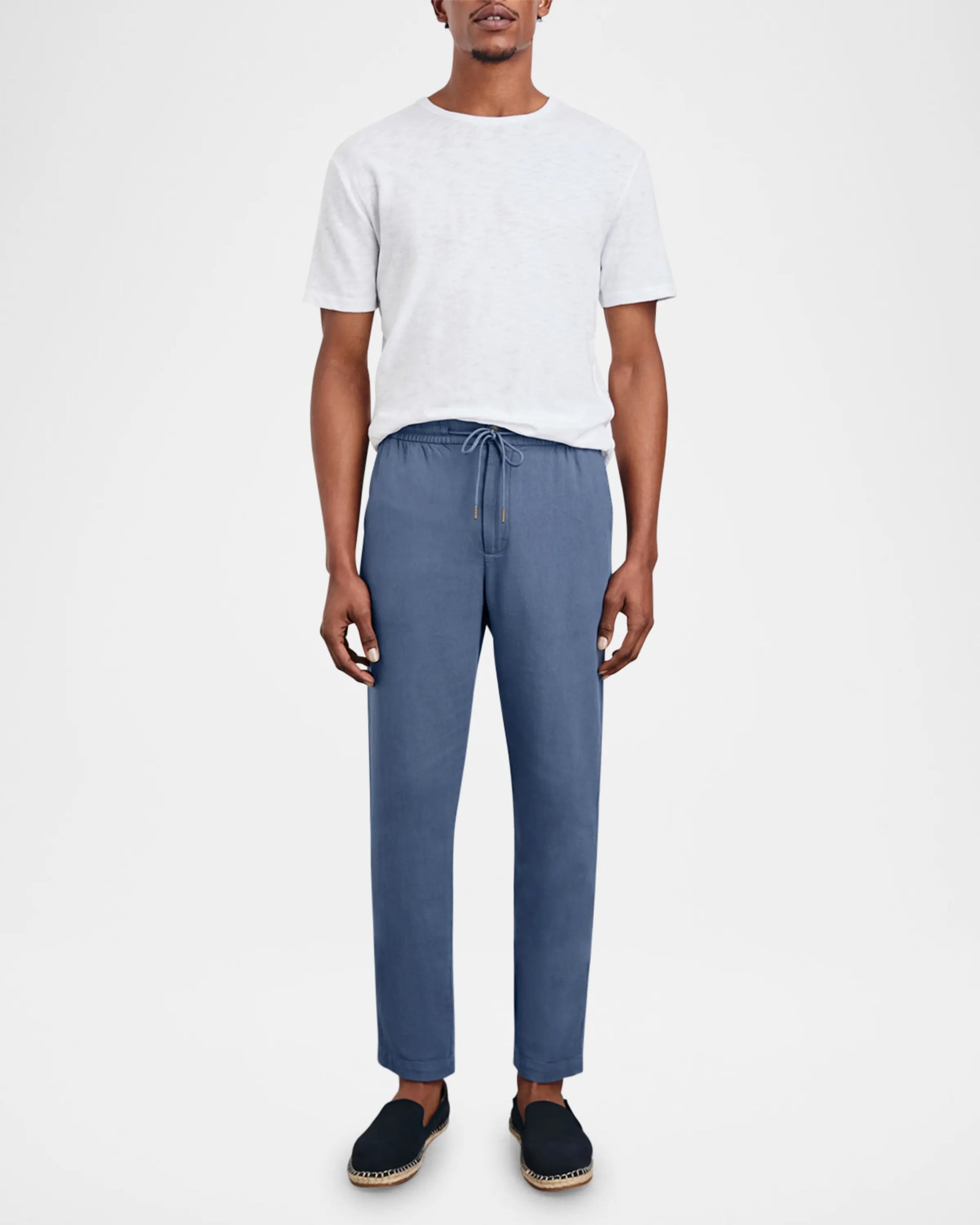 A flexible drawstring waist means daylong comfort in versatile pants crafted from linen-enriched cotton.
