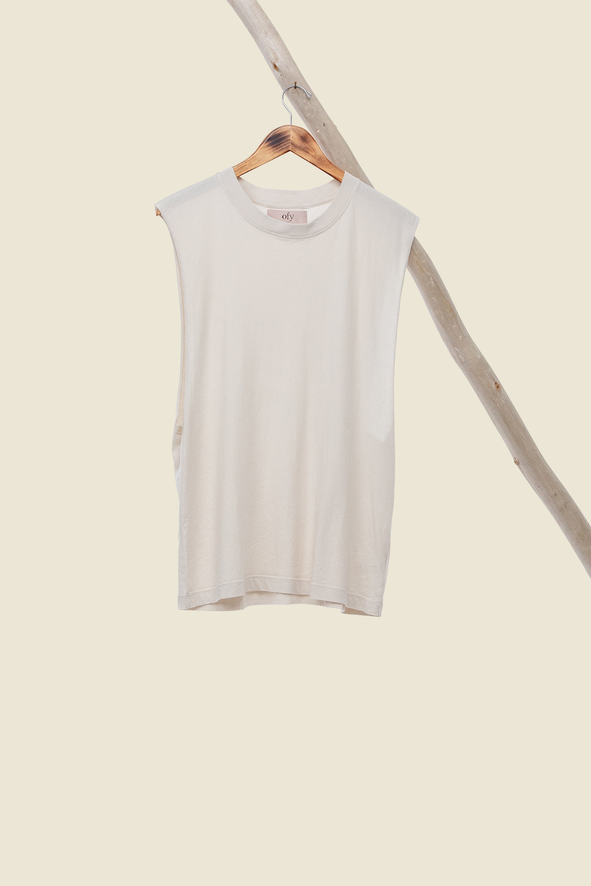 Designed to live in. The Essential Tank goes everywhere—studio, shoreline, city streets. Finished with a raw arm opening for a natural look and feel.