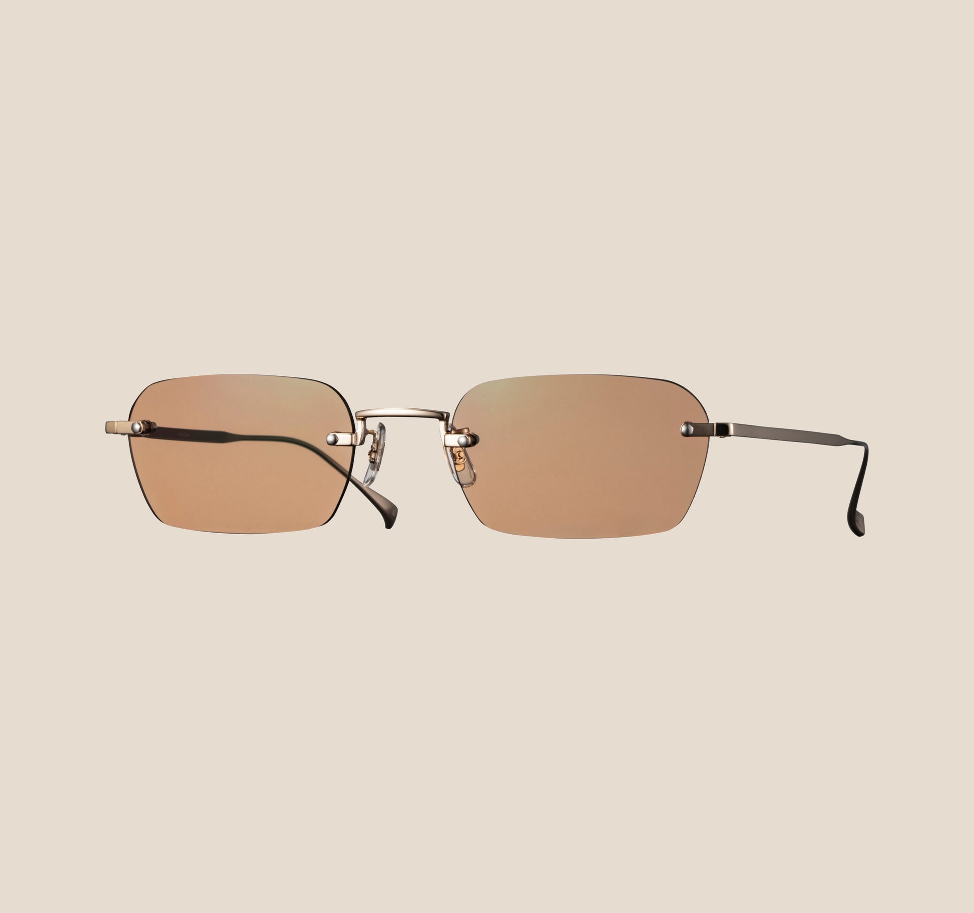This model, with its distinctive linear endpiece shape, is a rimless frame inspired by the luxury brand of the 1990s. In order to minimize the curve of the hinge viewed from above as much as possible, the opening and closing were designed many times in 0.1 mm increments, and the titanium block was produced by pressing and complex machining.
