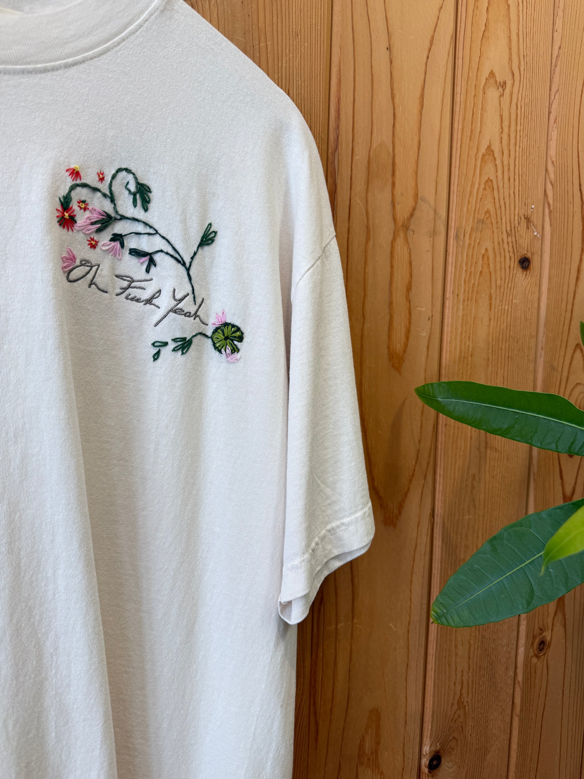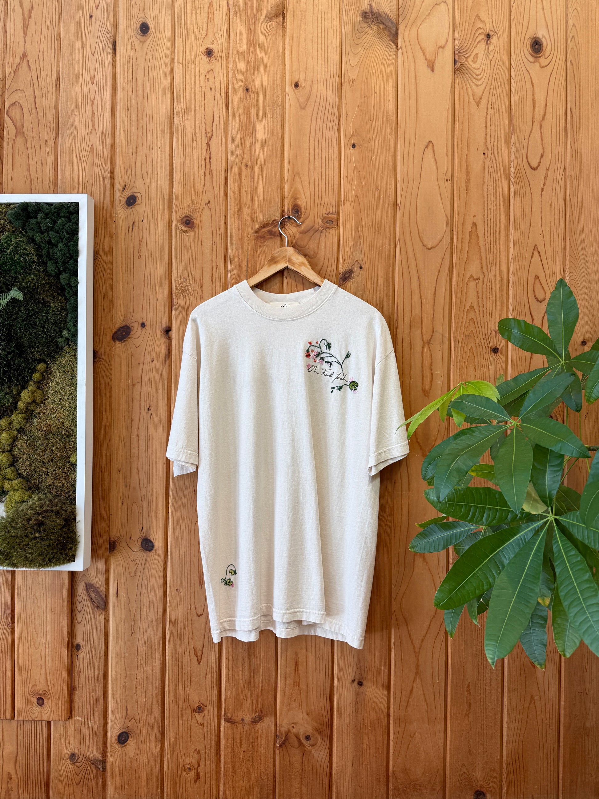 A generous fitting t-shirt with a vintage look + feel. The silhouette features a ribbed neckline and dropped shoulder seam. Life's a Journey + this tee is designed for the ride.