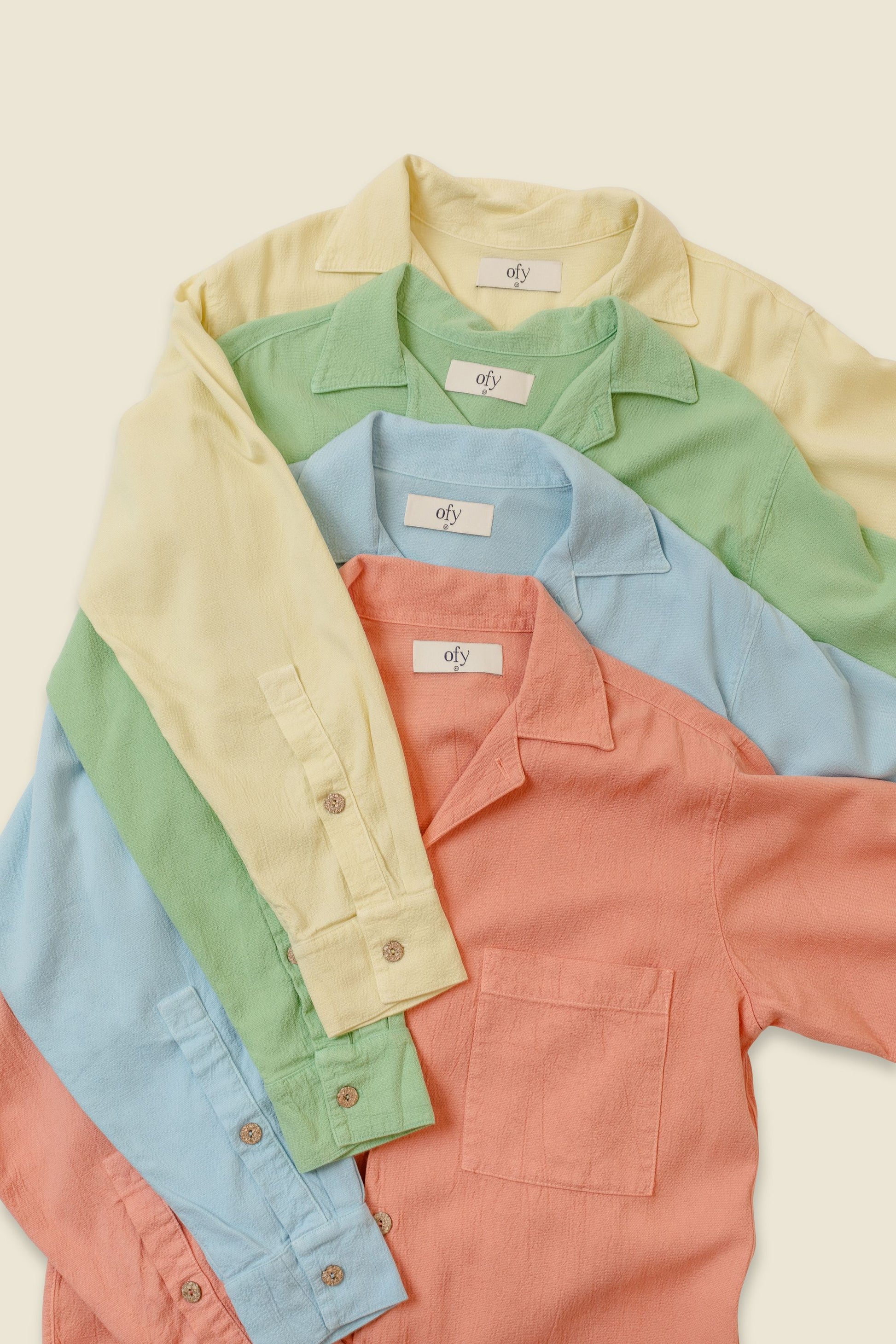 The Horizon Shirt is a classic camp collar with a vintage-inspired design. Crafted from a signature mid-weight cotton/tencel canvas with a textured finish (6 oz). It features a generous relaxed fit, front side pocket, French seams, side slits and recycled coconut buttons. Good things are on the Horizon.