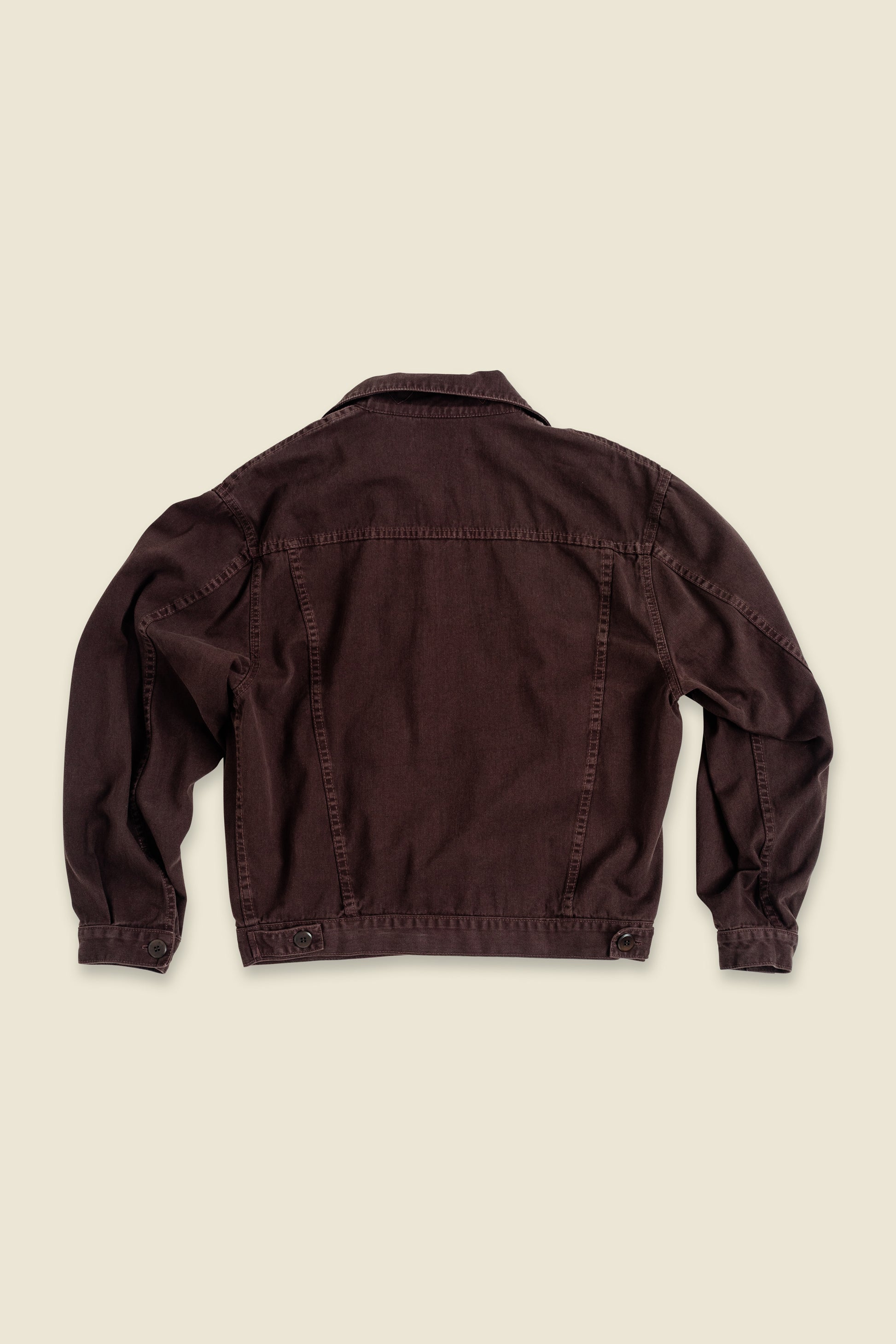 Crafted from organic heavy cotton twill with a dense diagonal weave, the fabric offers substantial weight, durability, and crisp structure. It softens with wear while maintaining its shape, developing a lived-in feel over time.
