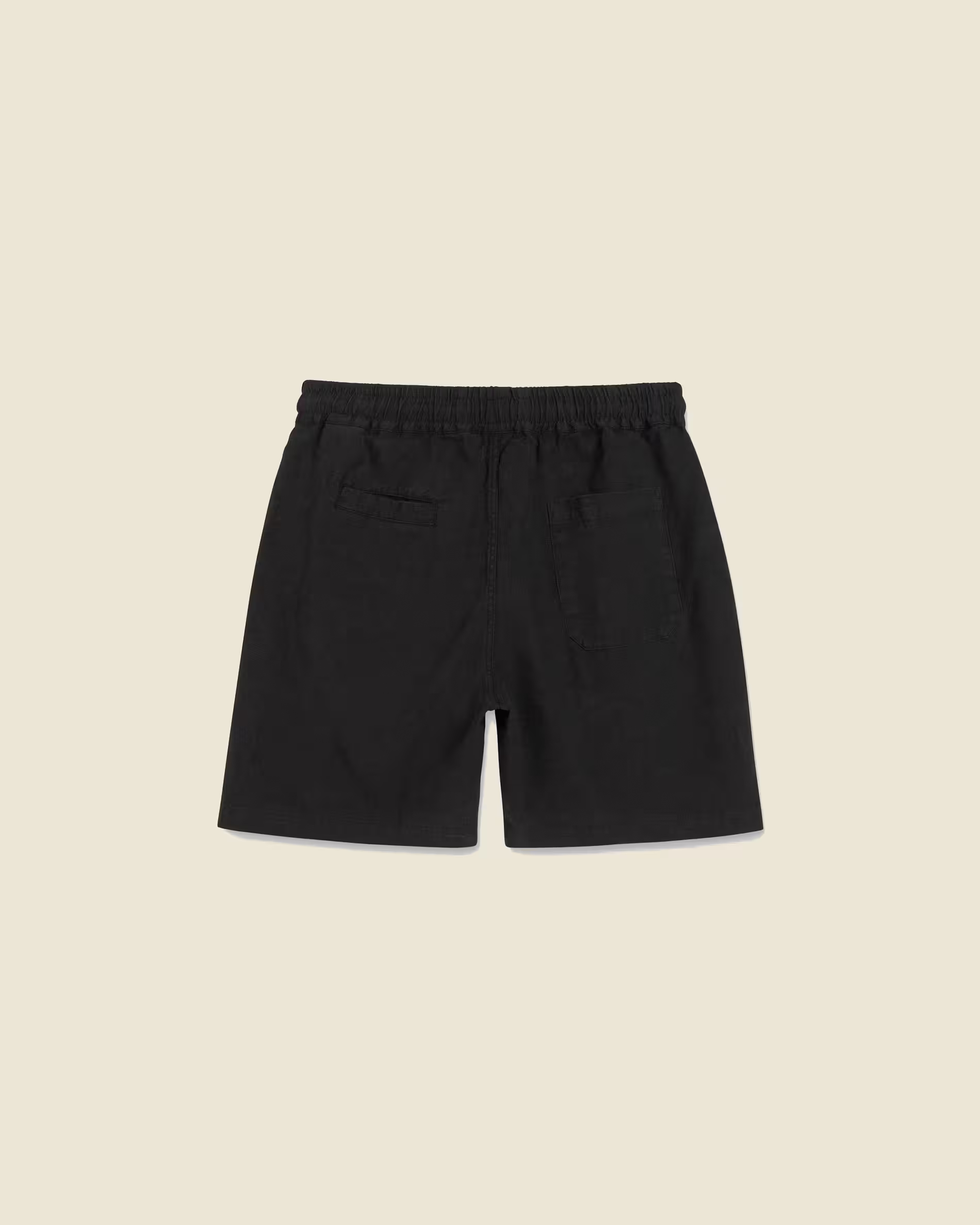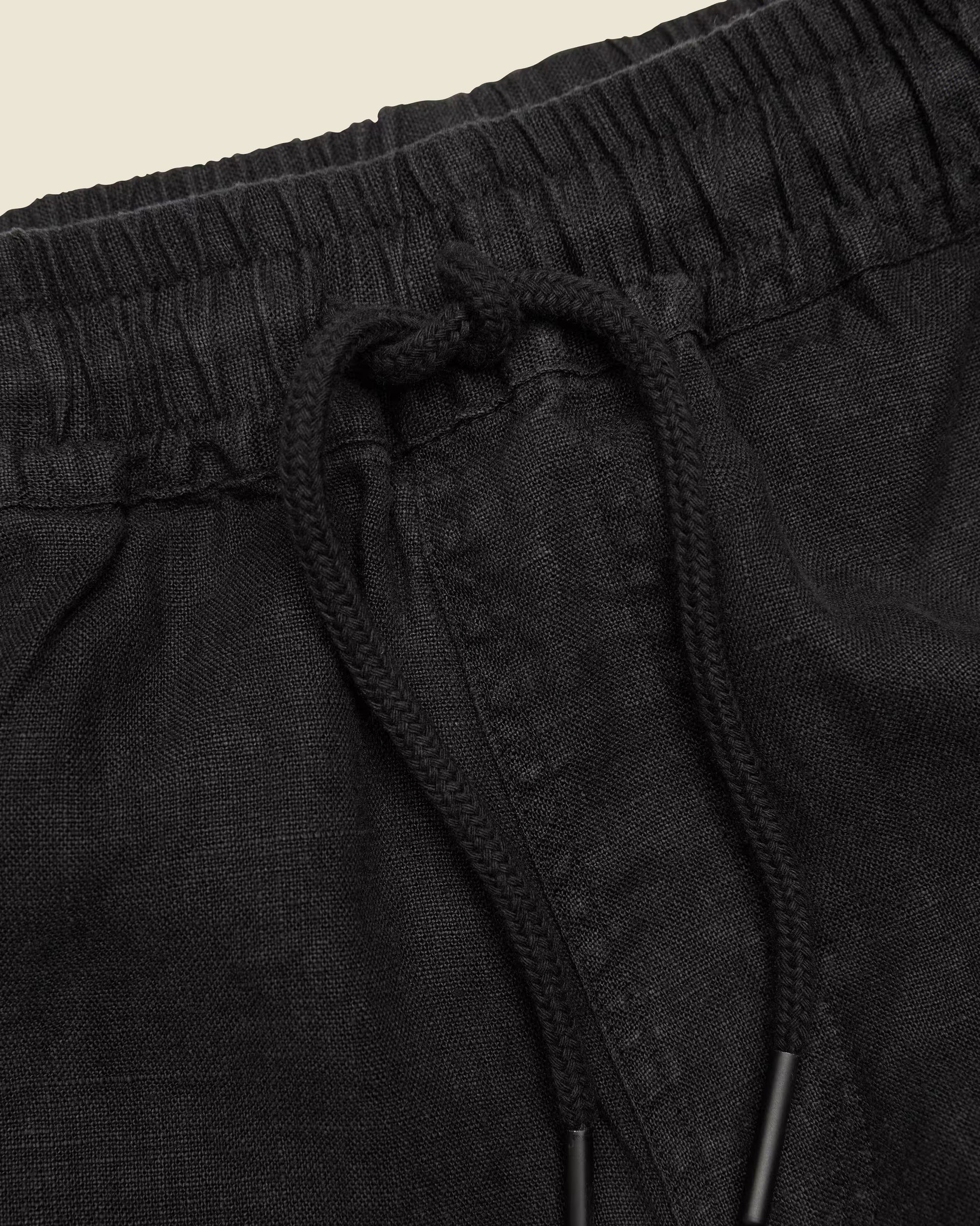 Black linen shorts made of breathable midweight woven linen. Mid-rise waist.