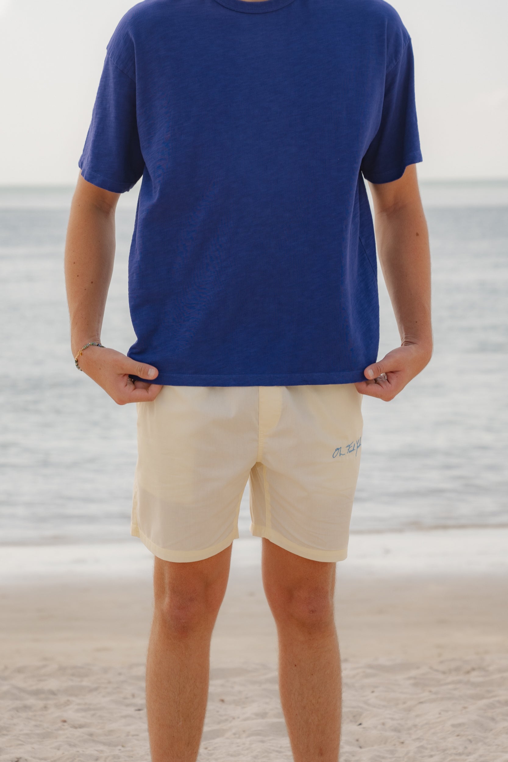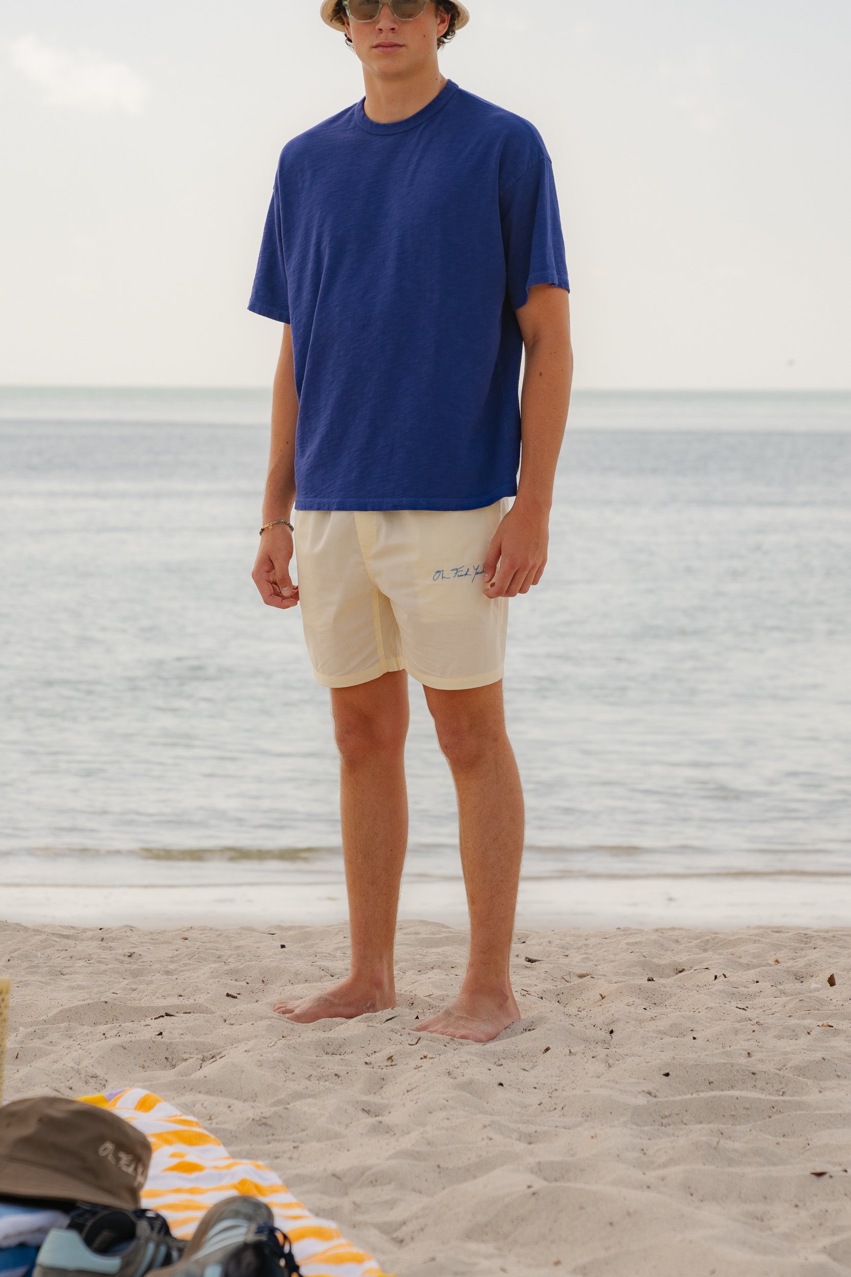 The signature beach short provides versatile utility; ideal for walking and swimming alike. Crafted from a quick-dry cotton fabric, it features two side and two back mesh-lined pockets, an elastic waistband, and an internal drawcord for a secure fit.