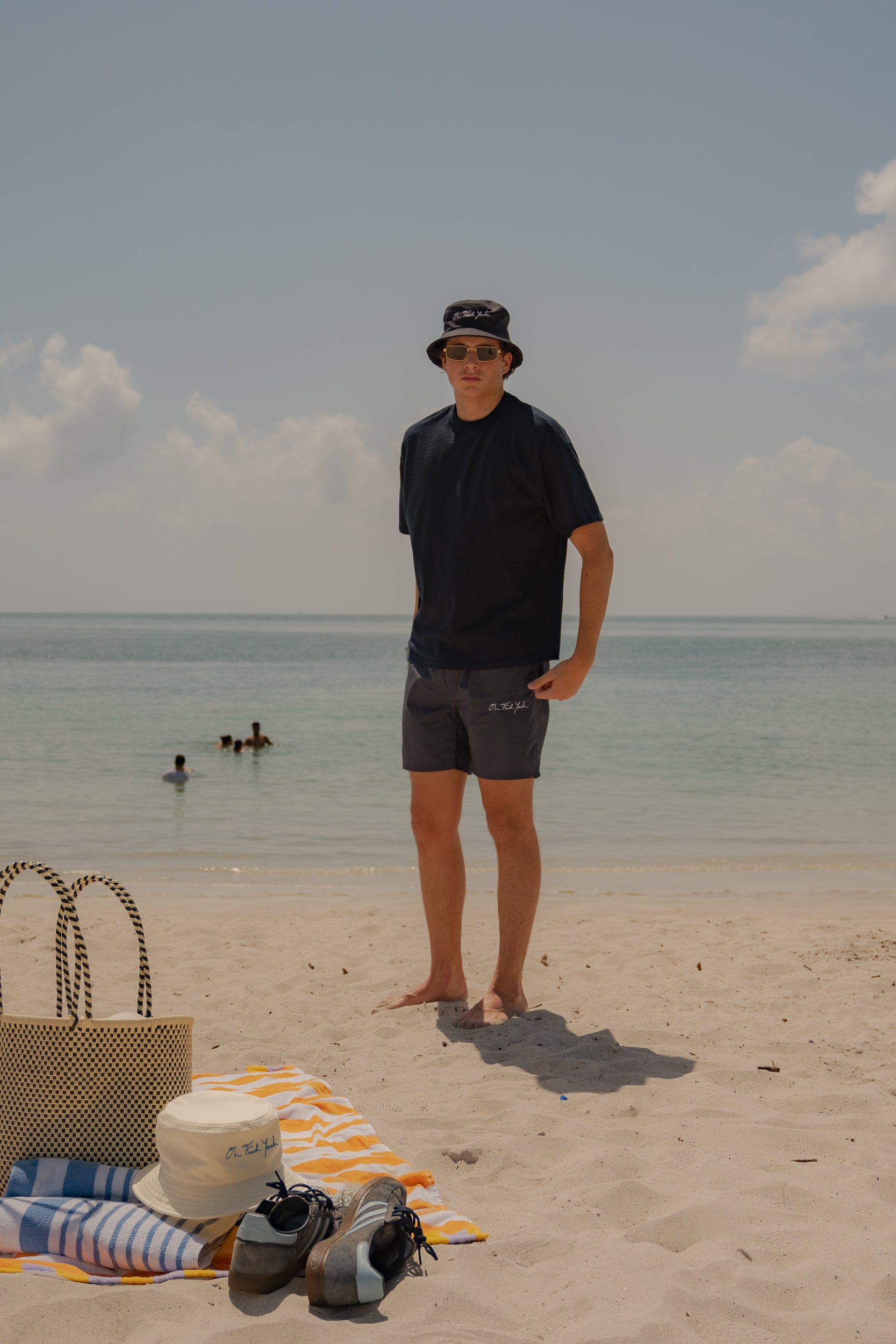 The signature beach short provides versatile utility; ideal for walking and swimming alike. Crafted from a quick-dry cotton fabric, it features two side and two back mesh-lined pockets, an elastic waistband, and an internal drawcord for a secure fit.