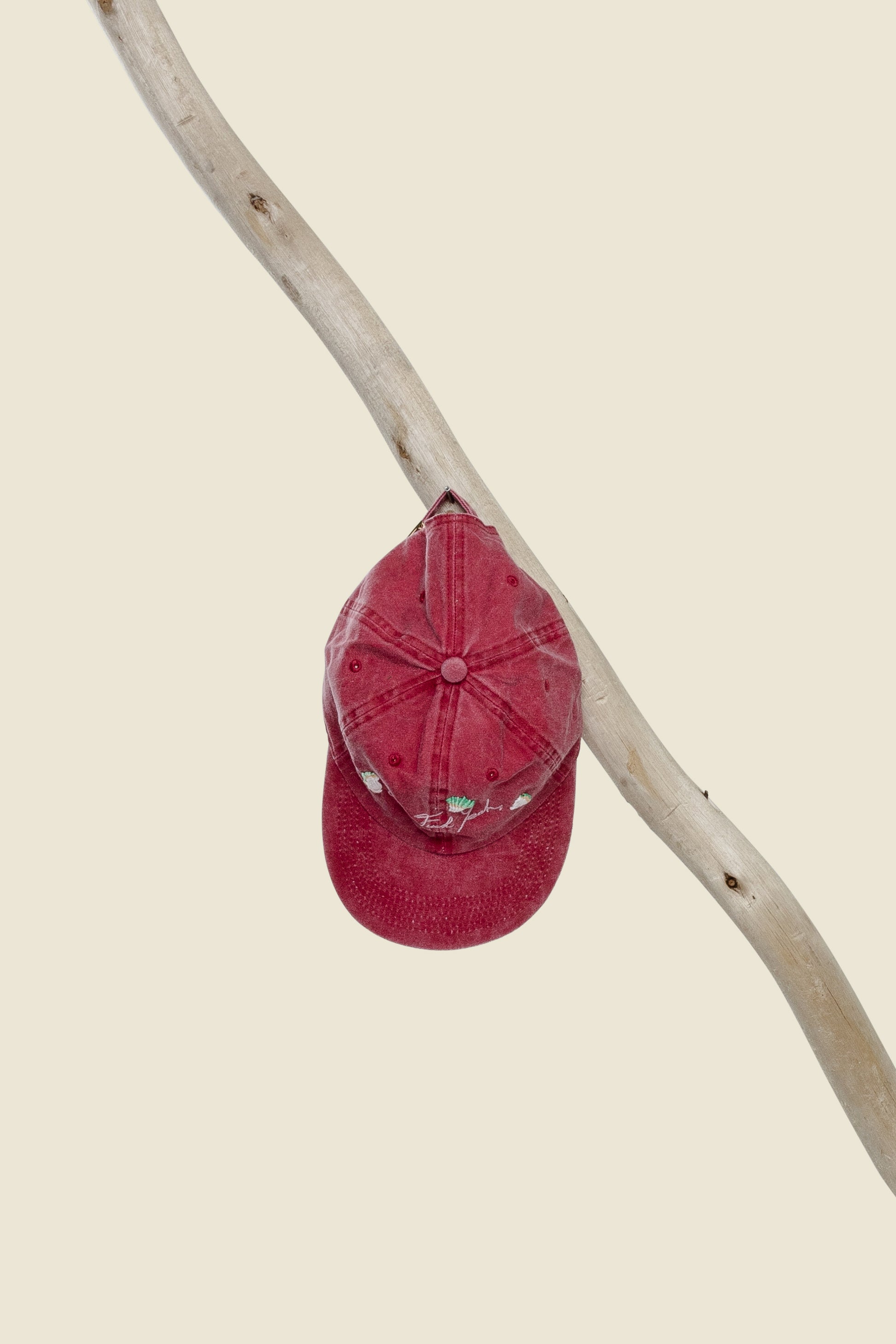 Six panel, unstructured curved bill hat. Self-fabric back strap with adjustable oxidized brass buckle closure. 100% Cotton Twill with a stonewash finish. One size fits most.