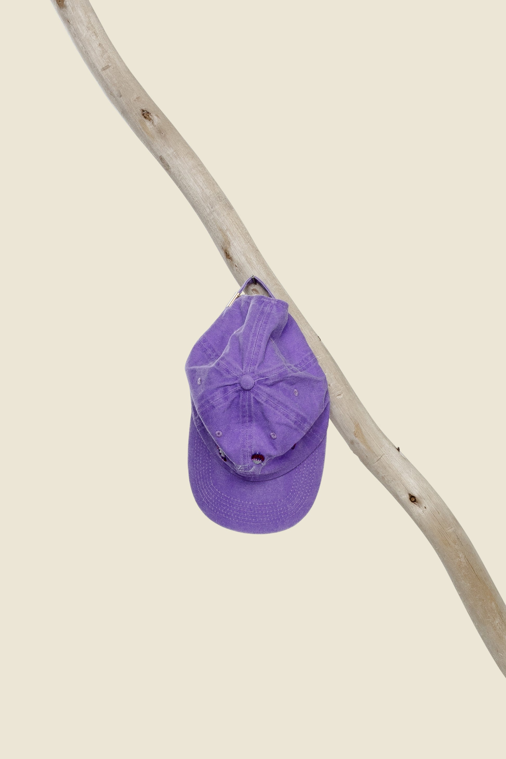 Six panel, unstructured curved bill hat. Self-fabric back strap with adjustable oxidized brass buckle closure. 100% Cotton Twill with a stonewash finish. One size fits most.