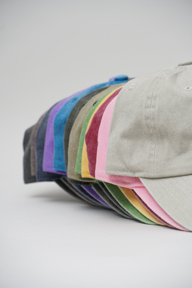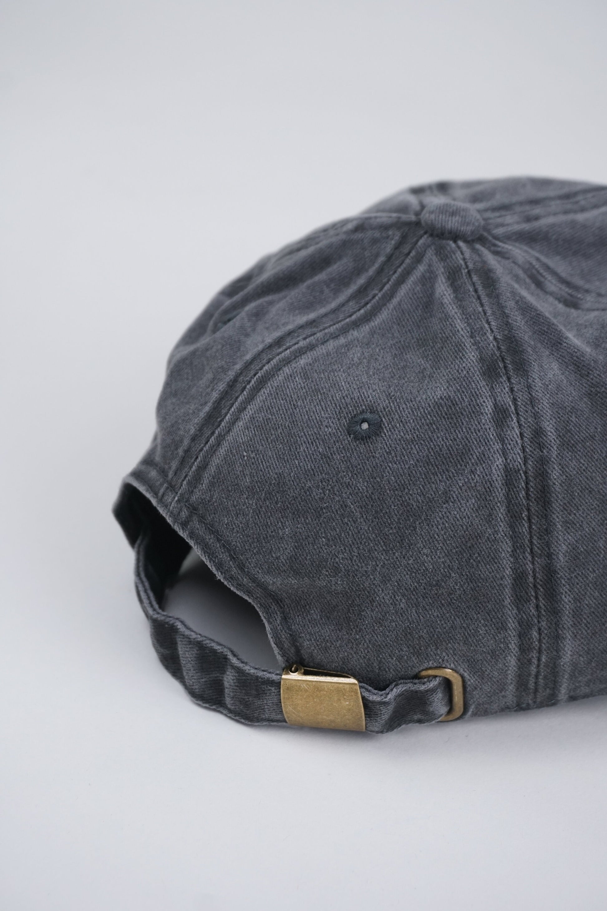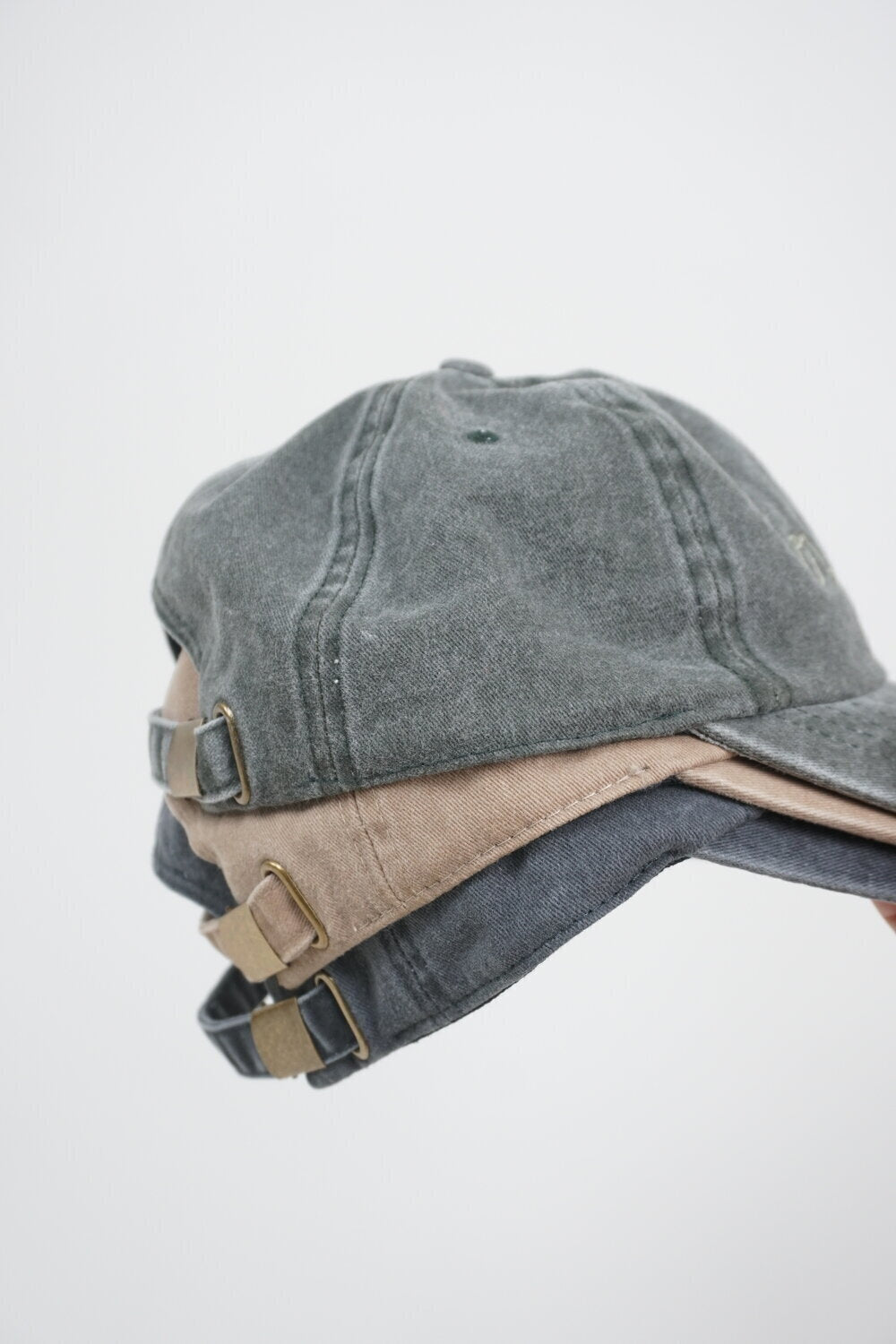 Six panel, unstructured curved bill hat. Self-fabric back strap with adjustable oxidized brass buckle closure. 100% Cotton Twill with a stonewash finish. One size fits most.