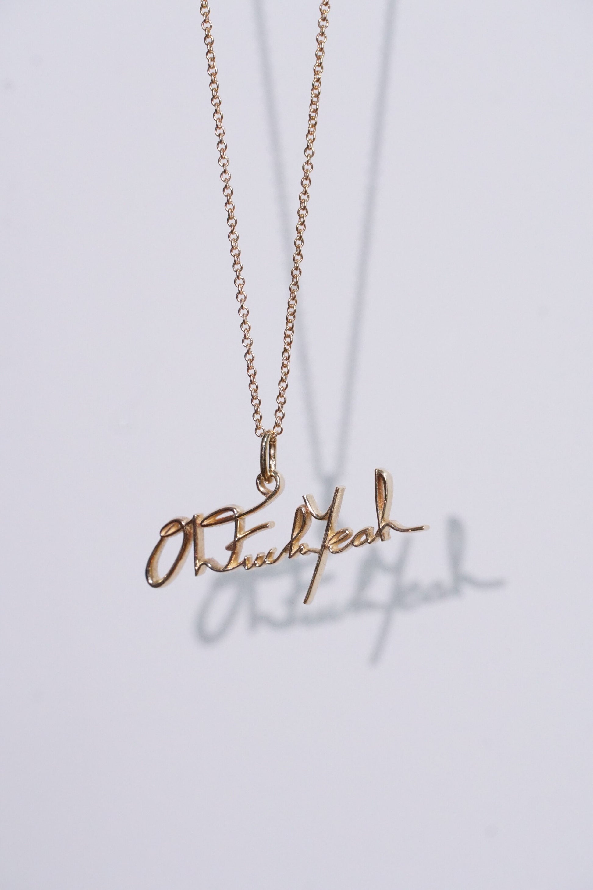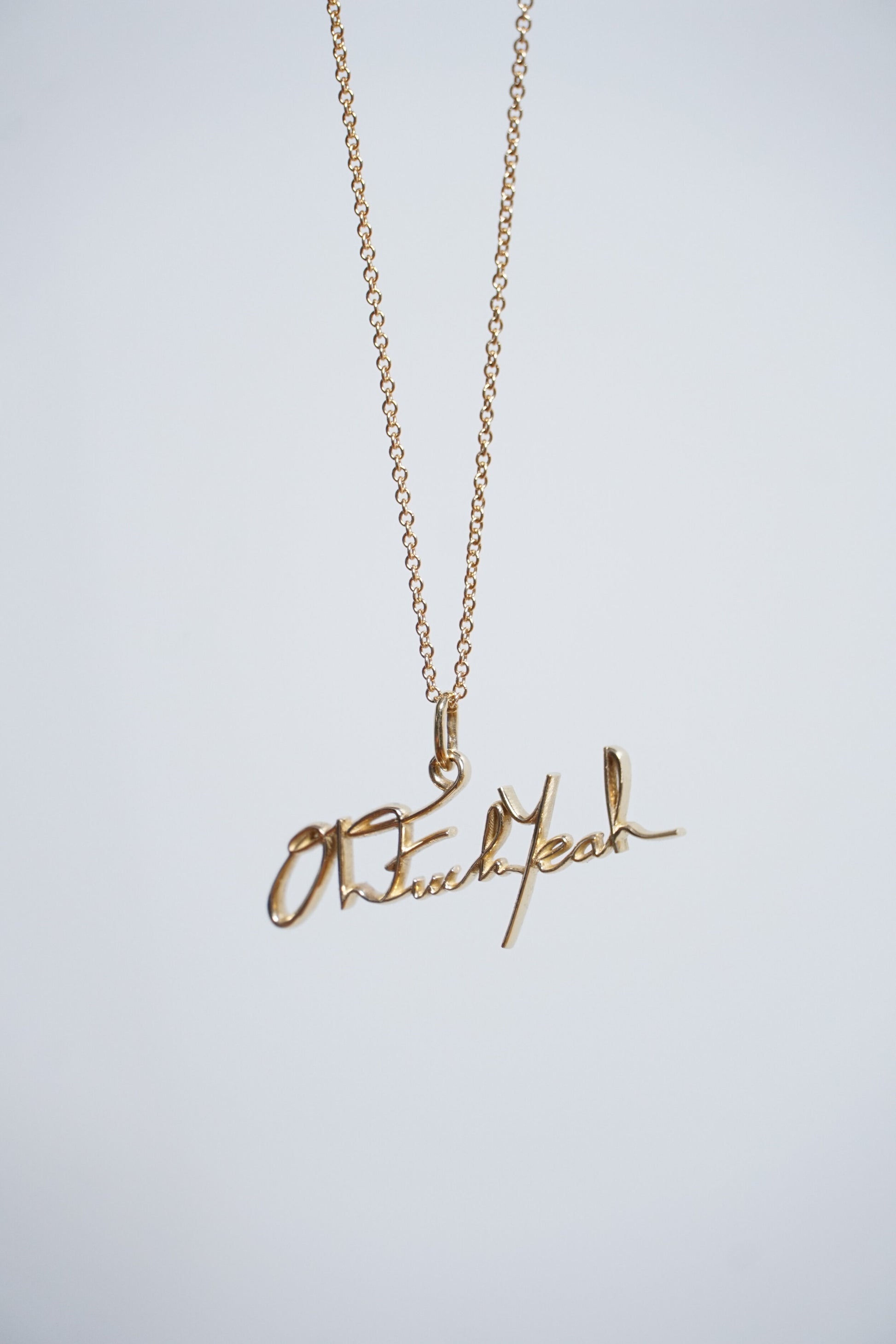The OFY Signature Pendant in 14k Yellow Gold fill is thick and substantial and includes a bail for chain. It was designed to resemble the original OFY neon sign at our flagship location in Wynwood, Miami.