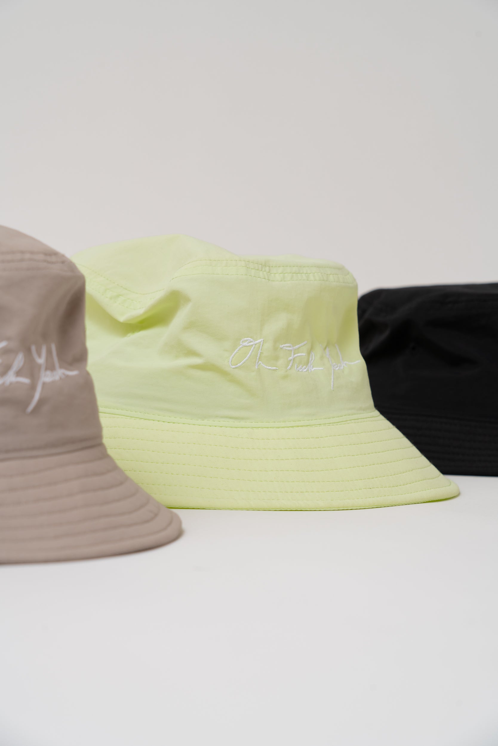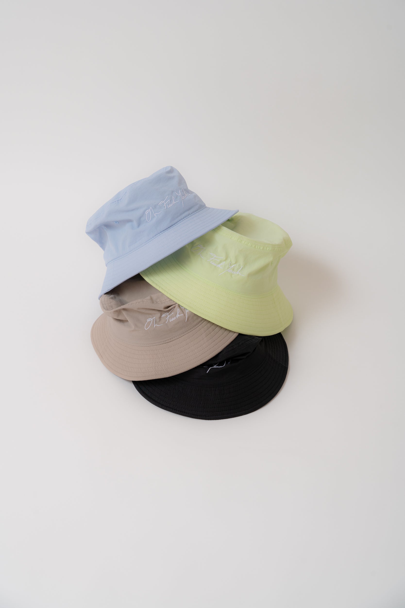 The Signature Nylon bucket features a lightweight 100% recycled nylon. This quick drying hat is one size fits all.