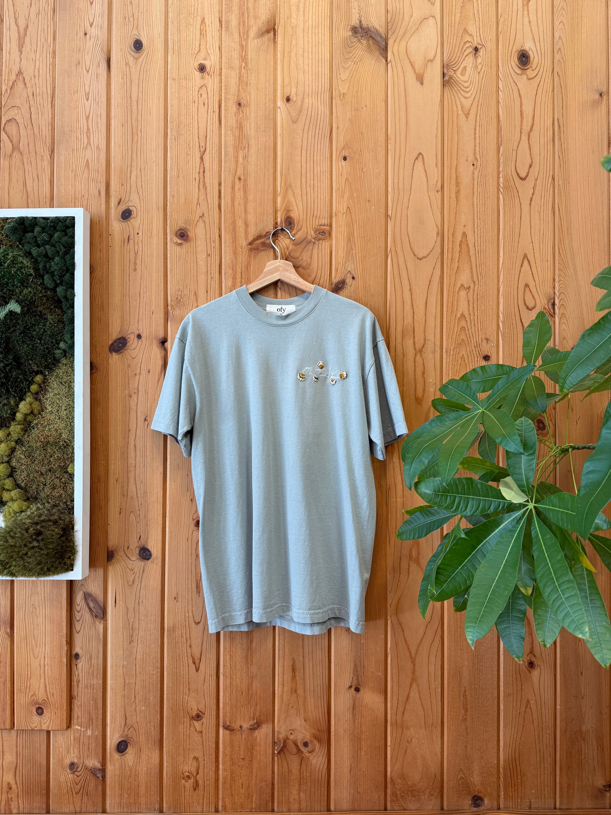 A generous fitting t-shirt with a vintage look + feel. The silhouette features a ribbed neckline and dropped shoulder seam. Life's a Journey + this tee is designed for the ride.