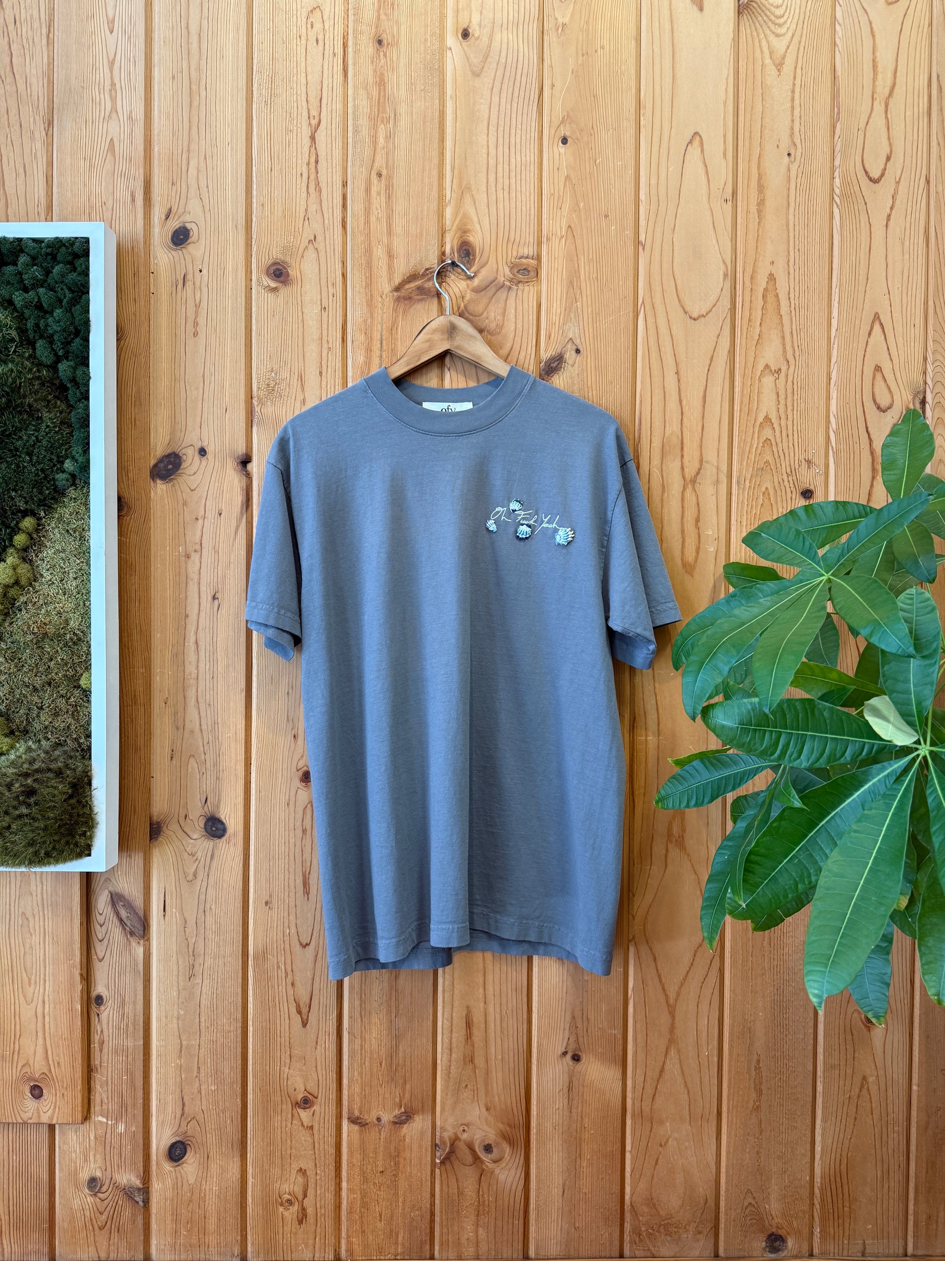 A generous fitting t-shirt with a vintage look + feel. The silhouette features a ribbed neckline and dropped shoulder seam. Life's a Journey + this tee is designed for the ride.