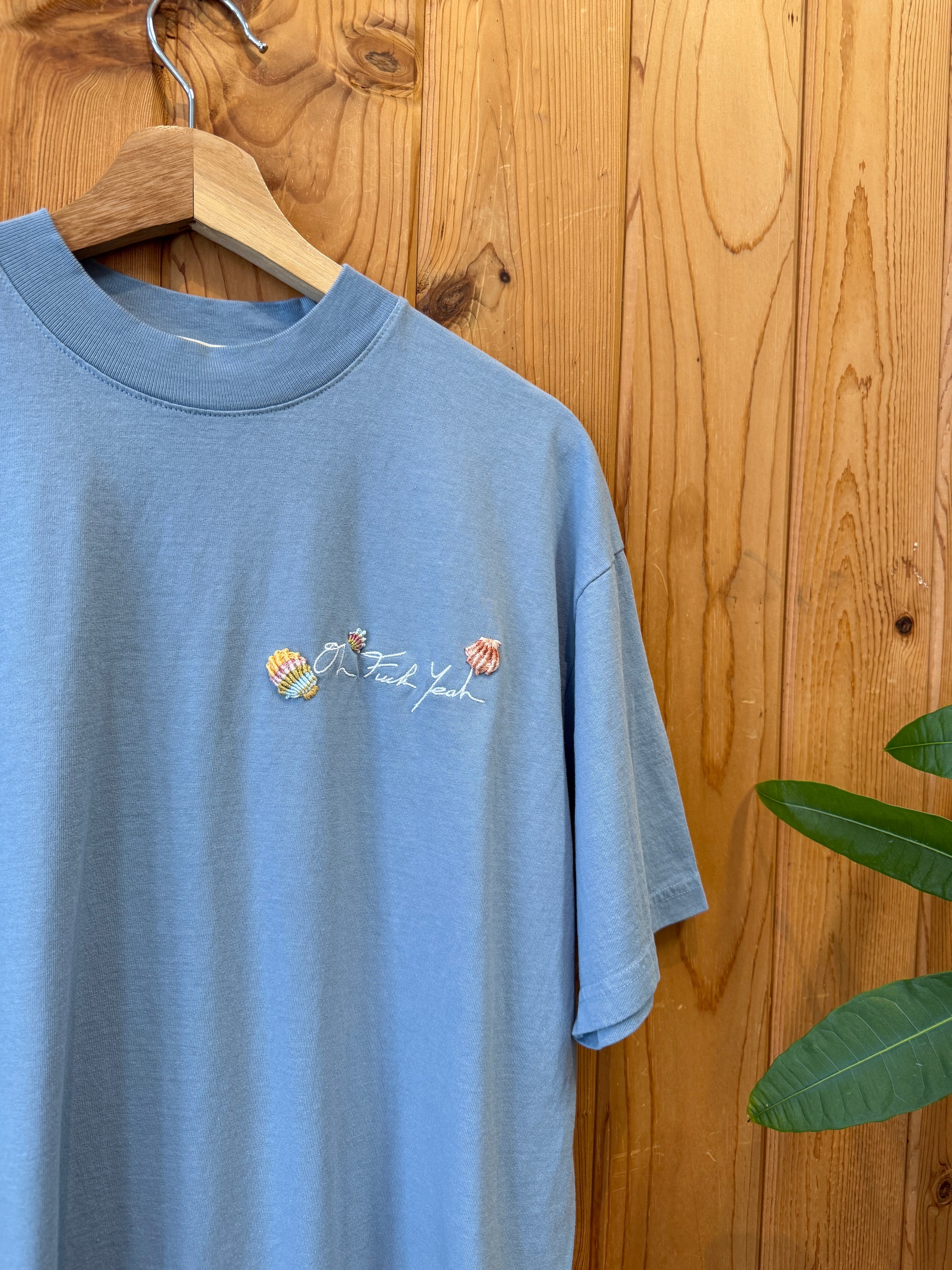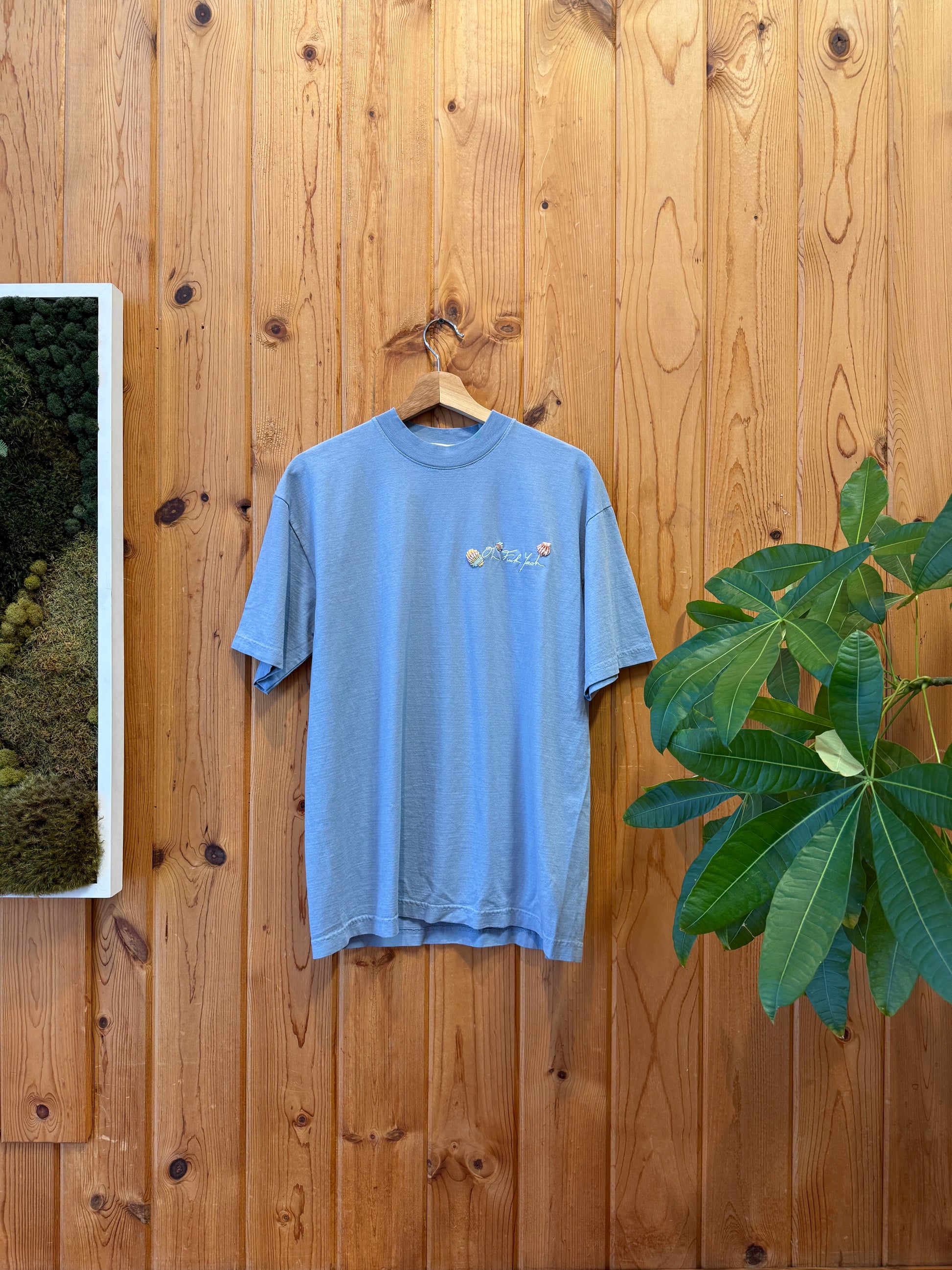 A generous fitting t-shirt with a vintage look + feel. The silhouette features a ribbed neckline and dropped shoulder seam. Life's a Journey + this tee is designed for the ride.