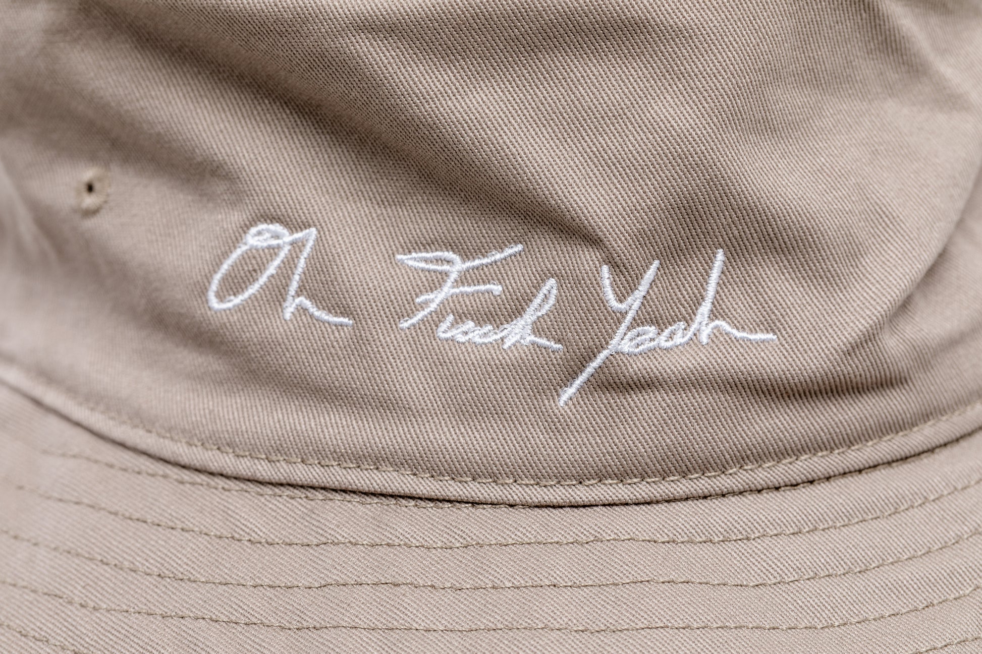 The Signature Wide Brim bucket features a mid-weight 100% cotton canvas. This hat includes a self-fabric chin strap with a recycled plastic adjustable toggle. One size fits all.