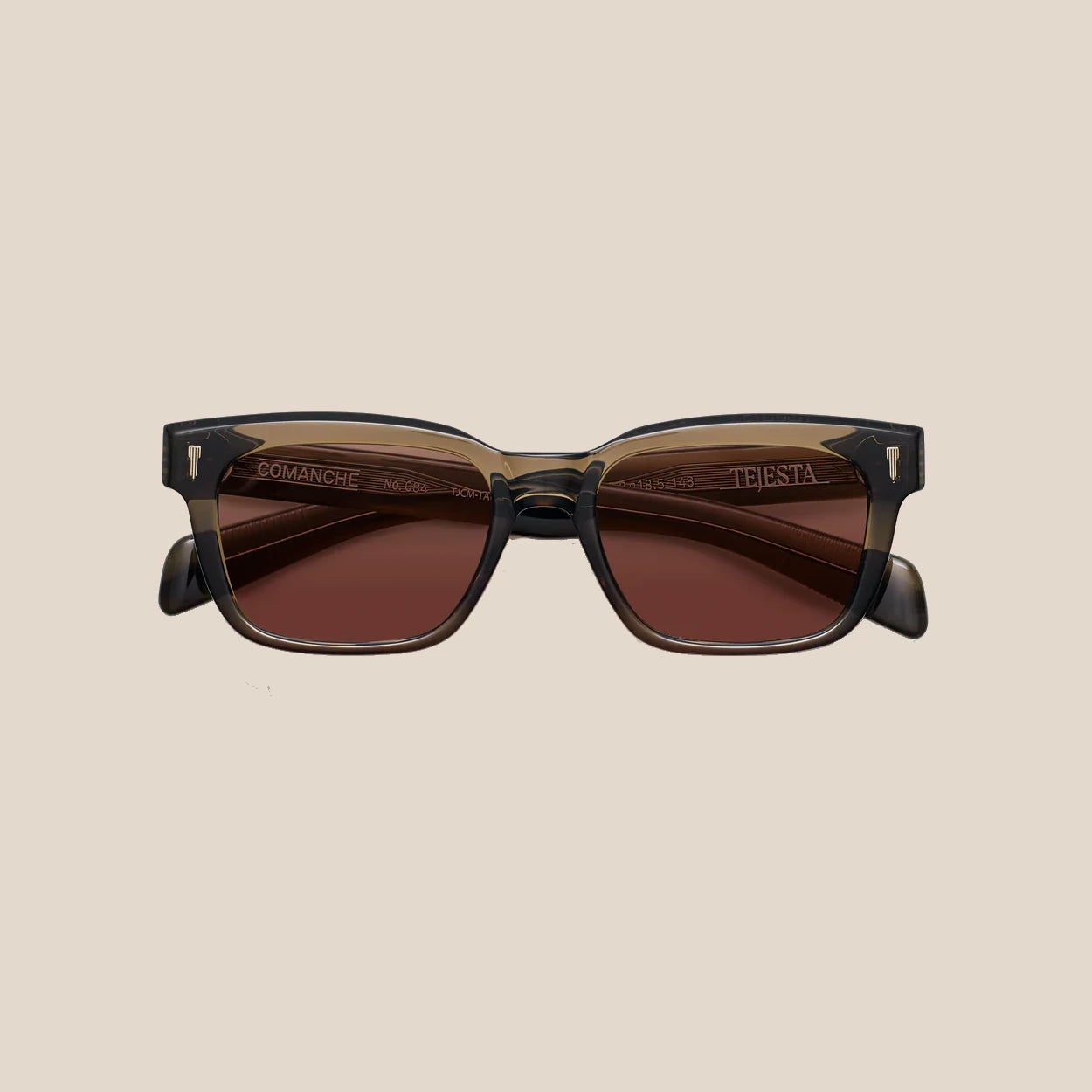 The Comanche is a sizable, rectangular silhouette with an enlarged temple that works in synchronicity with its widened frame front - finding its feet through its paddle temple tip design. Made as an offering for the spirits of creation, the front bevel cut is a carving for natural light to illuminate the micro-details found on this piece.