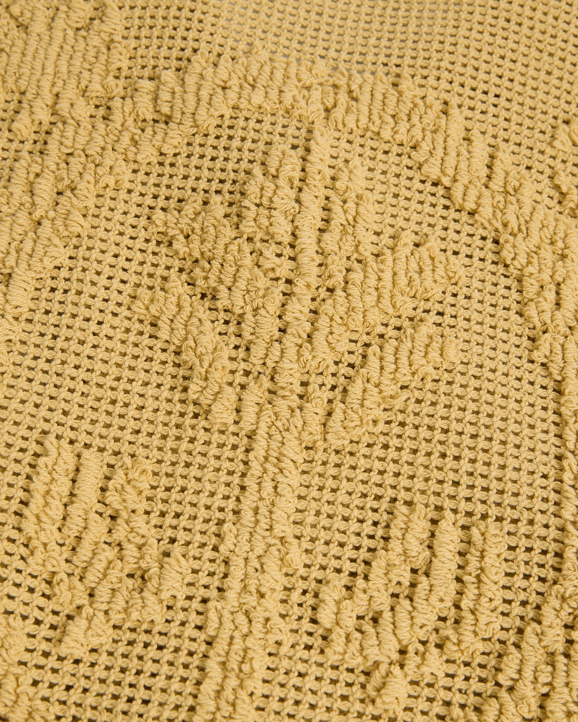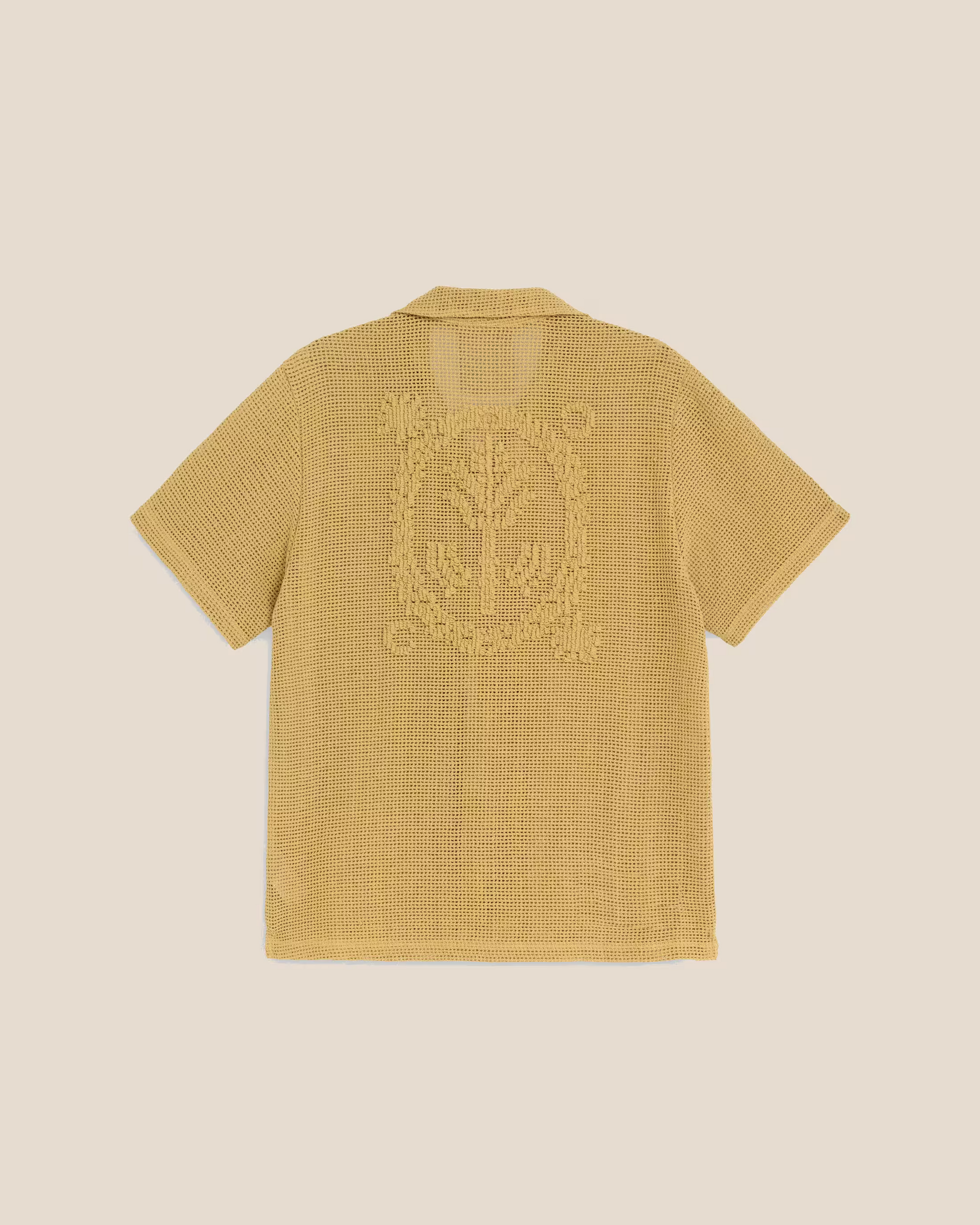 Open knitted crochet shirt in mustard yellow. Relaxed fit with slightly dropped shoulders.