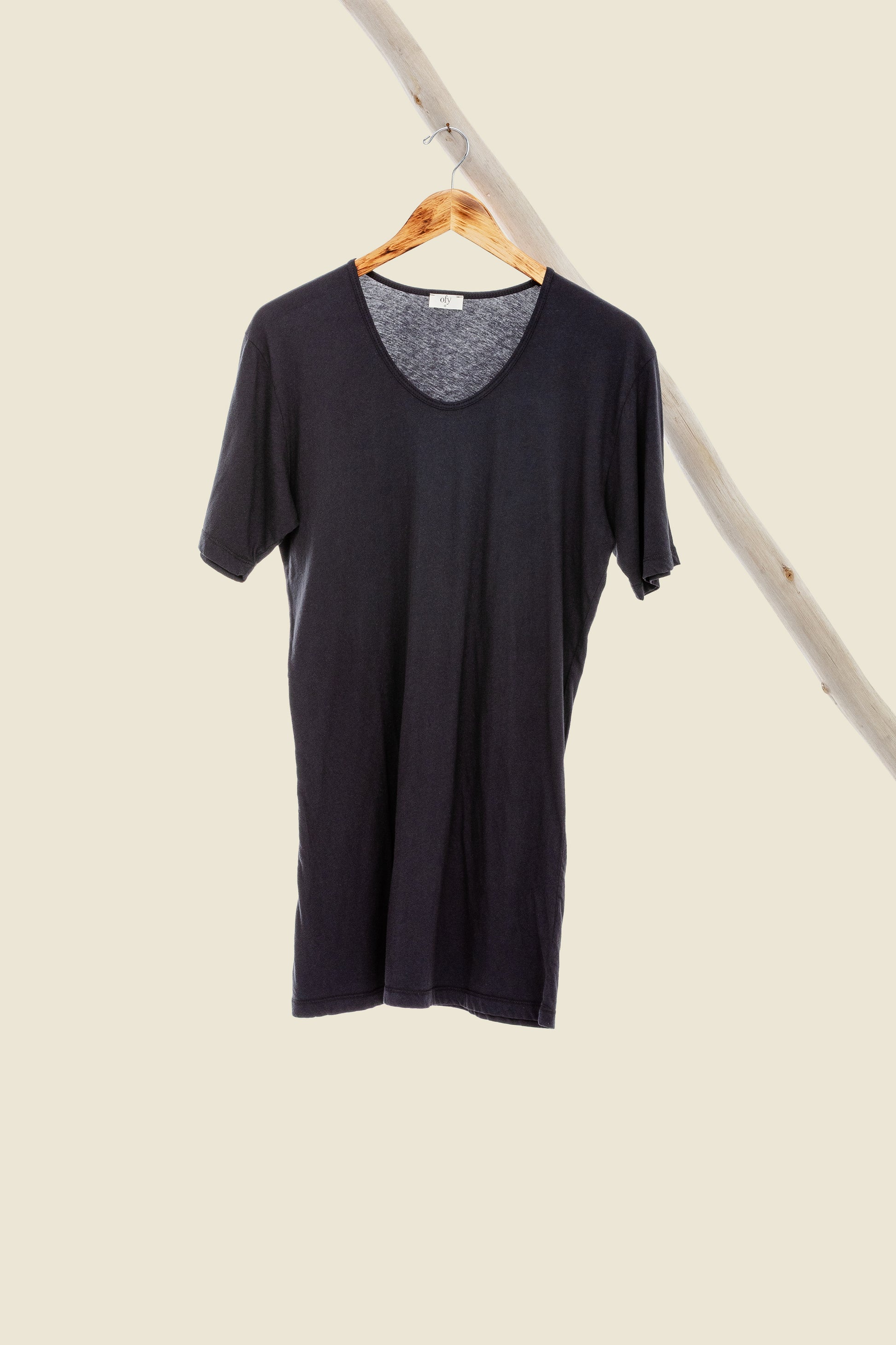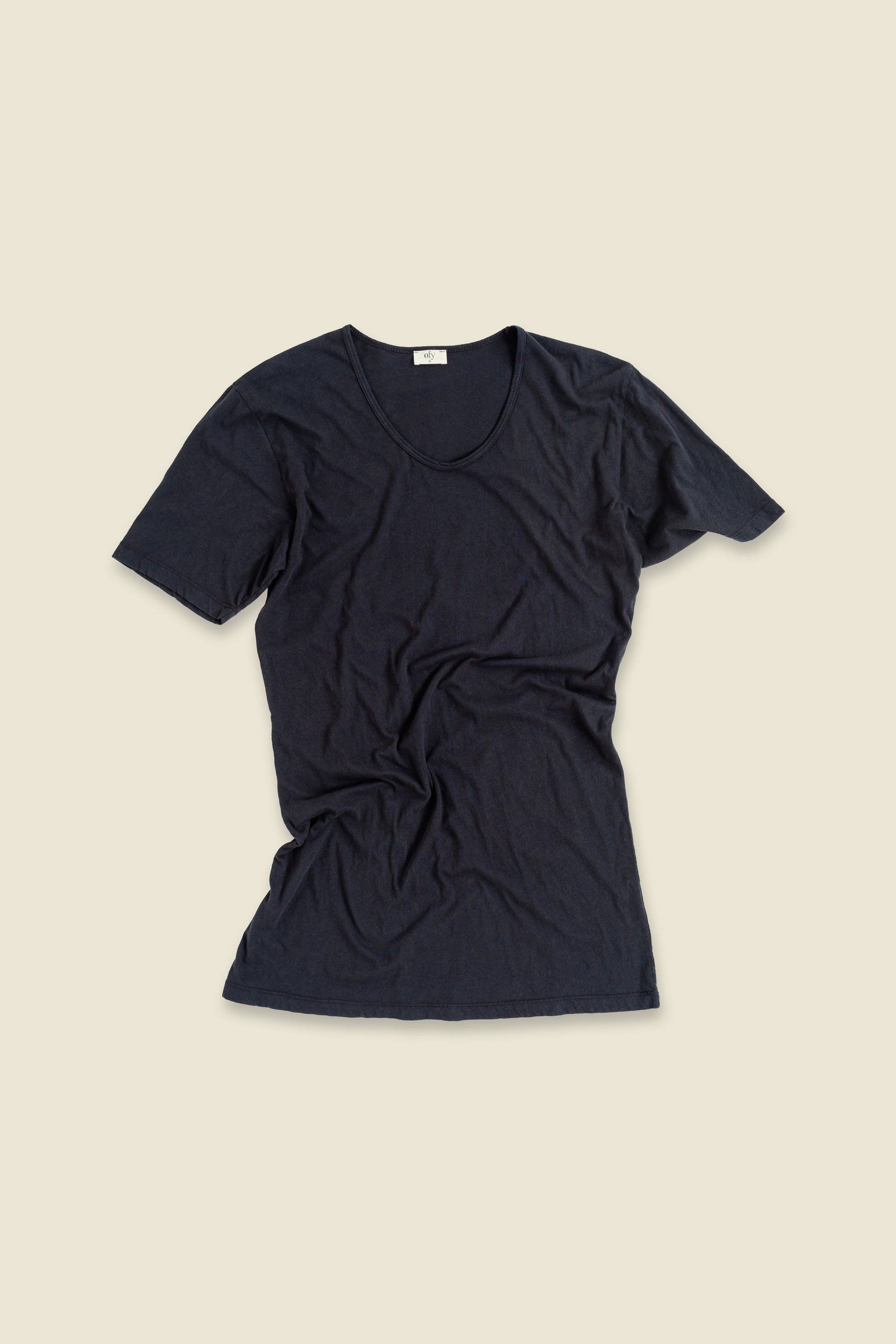Crafted from ultra-light tissue jersey, the fabric is paper-thin, super breathable, and practically weightless against the skin. It drapes effortlessly, keeping you cool and comfortable all day, transforming this simple undertee into a versatile, premium essential.