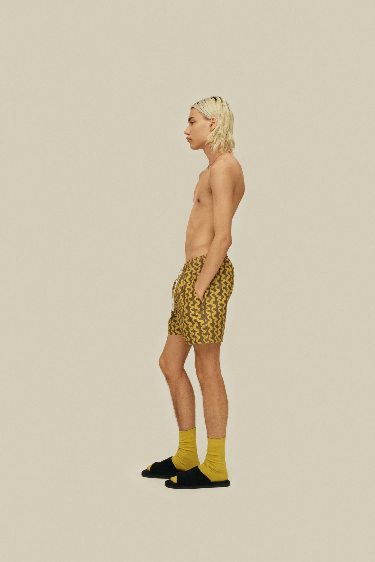 The Twine swim shorts are tailored from a peachy, quick-drying shell fabric with a serpentine brush-stroke print. Cut for a relaxed, straight fit with an elasticized drawstring waistband and built-in mesh briefs for comfort and support. Keep your keys and cards securely stored in the hidden zip pocket.