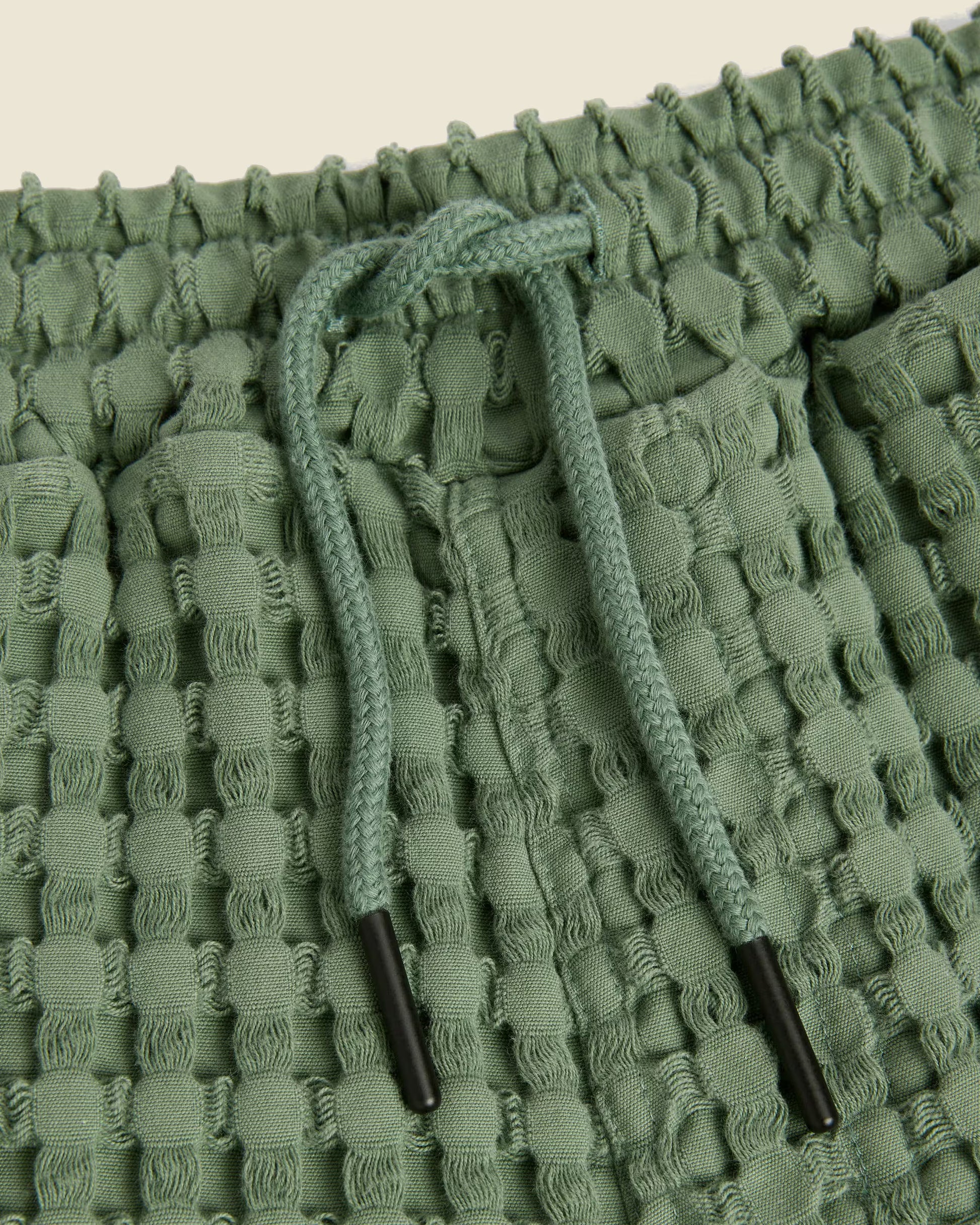 Green waffle shorts. Breathable with a regular fit and mid-rise waist.